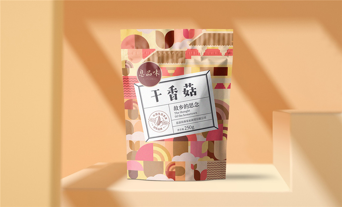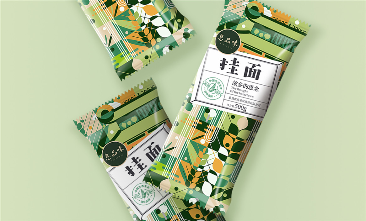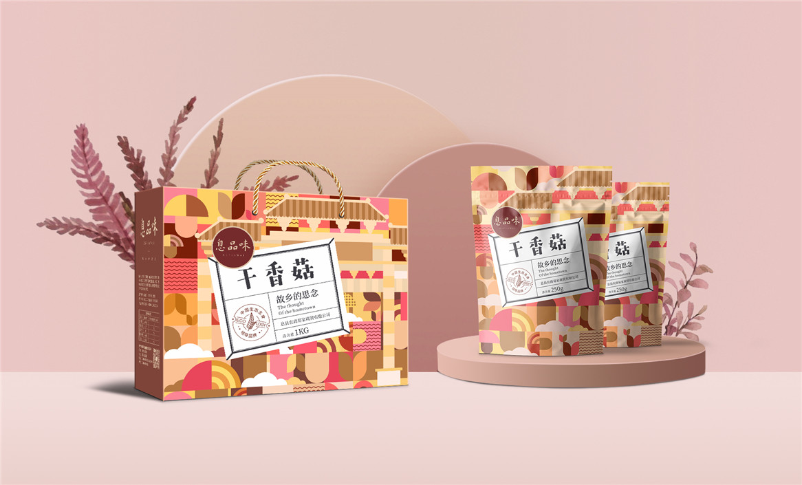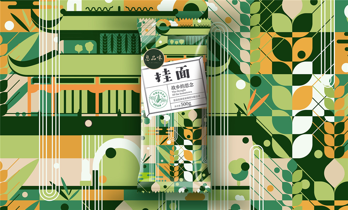 以“故鄉(xiāng)的思念”為品牌溝通語言,從息品味產(chǎn)品生態(tài)特征,地域代表文化、當(dāng)?shù)孛袼酌耧L(fēng)等提取包裝設(shè)計元素,以平面幾何形態(tài)的方式把產(chǎn)品、產(chǎn)地、相關(guān)文化特征進行符號化設(shè)計視覺表達,用一種與當(dāng)下農(nóng)副產(chǎn)品市場不同的包裝表現(xiàn)方式設(shè)計,展現(xiàn)綠色新生活,迎合當(dāng)下消費升級審美升級的新消費趨勢,快速建立品牌認知。
