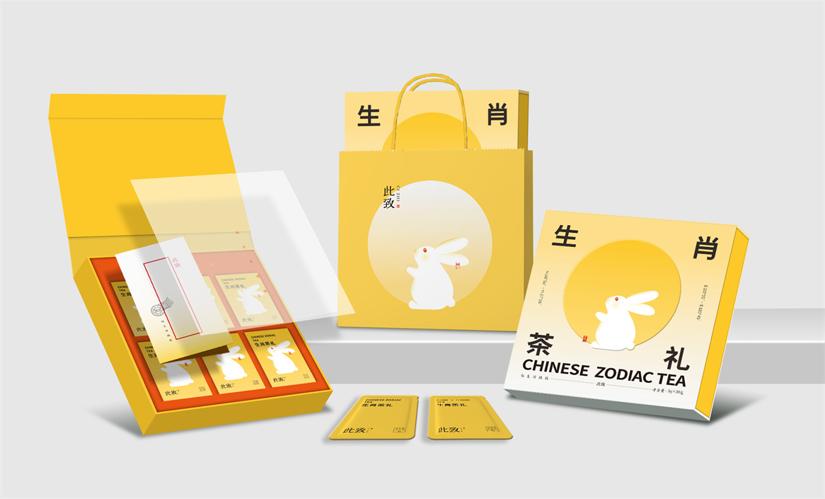 福兔IP生肖禮盒,不是一個(gè)傳統(tǒng)意義上的的茶禮盒,而是以文創(chuàng)禮品的形式和訴求來(lái)創(chuàng)作的一款茶禮。這款禮盒的包裝設(shè)計(jì)定位是專門針對(duì)有一定的生活美學(xué),對(duì)文化和時(shí)尚有一定追求的人群而設(shè)計(jì)。禮盒包裝設(shè)計(jì)一只胖墩墩的生肖IP福兔在一輪明月的映照下,格外敦厚可愛(ài)。明黃的色調(diào),柔和而溫馨。東方既白式的漸變背景,年輕又不失時(shí)尚。內(nèi)部設(shè)置獨(dú)立小包裝設(shè)計(jì),一泡一袋,精致便捷,方便攜帶,給2023年的生活增添一份美好。