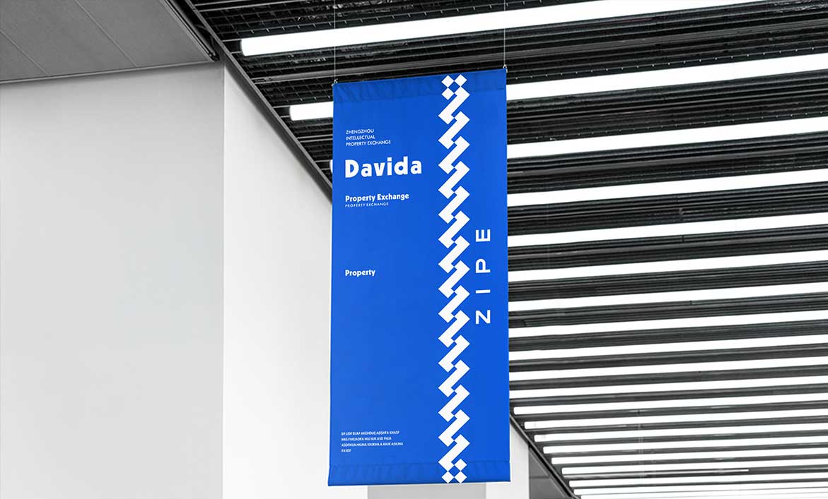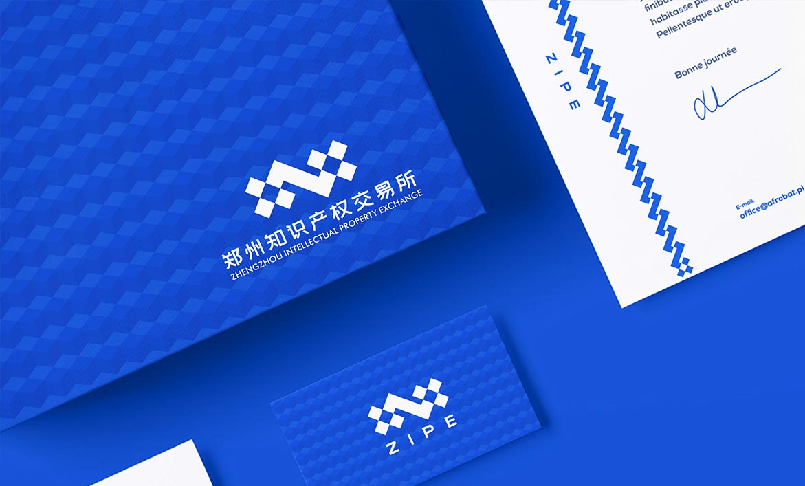 品牌形象設計從鄭州知識產權交易所的品牌名稱和行業屬性為原點提出概念并展開創作,突出平臺交易和連接的特征,以及鄭州知識產權交易所的兩大業務主體和六大業務模塊。一個個藍色方塊代表科技、知識、模塊,也是一個開放的智慧平臺空間,通過一個“Z”字形相連,也是鄭州知識產權交易所英文首字母和交易走勢k線圖,代表鄭州知識產權交易所知識產權交易和無限連接。