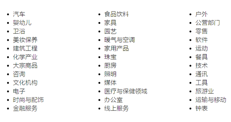 公司企業可為其整體品牌傳播報名參加“品牌”門類中 36 個行業類別之比賽:
