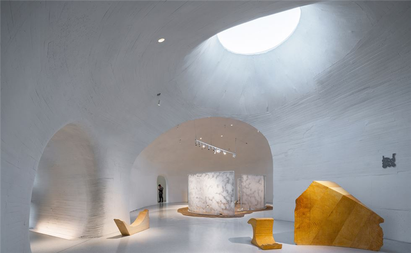 位于北戴河黃金海岸的沙丘美術館,選址于海邊,保留了混凝土殼體上留下的不規則甚至不完美的肌理,既是對自然的敬畏,也是一種保護。(圖源:designmuseum)