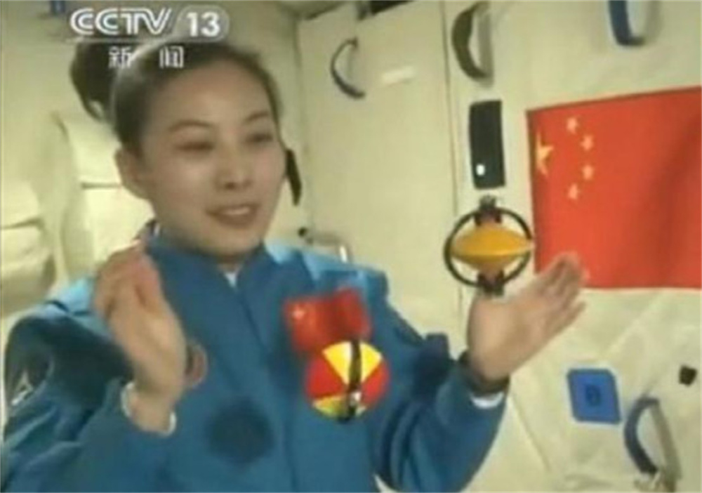 圖注:2013年,神舟十號(hào)航天員王亞平在天宮一號(hào)里進(jìn)行太空授課,演示小陀螺在失重狀態(tài)下的行為。