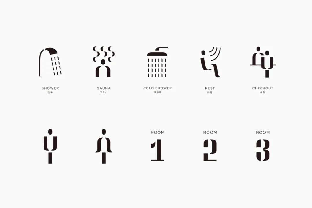 在設(shè)計(jì)logo時(shí),考慮到這是日本第一個(gè)單獨(dú)桑拿浴設(shè)施和神樂坂的布局,將tune的4個(gè)字組合成田字型,給人留下了像花紋一樣的印象。將其配置在門簾、燈籠、作務(wù)衣型制服等上,雖然是英語名稱,但卻有著日本式的視覺認(rèn)同感。