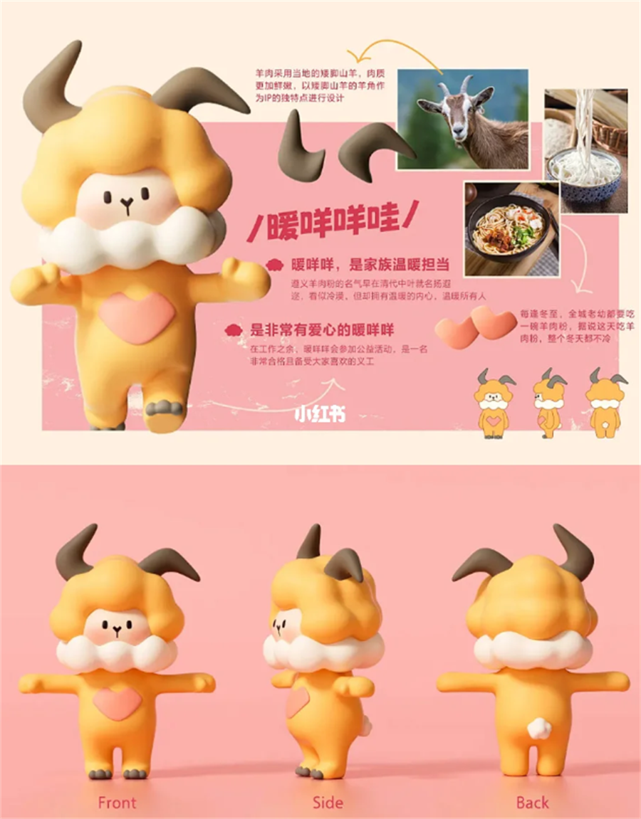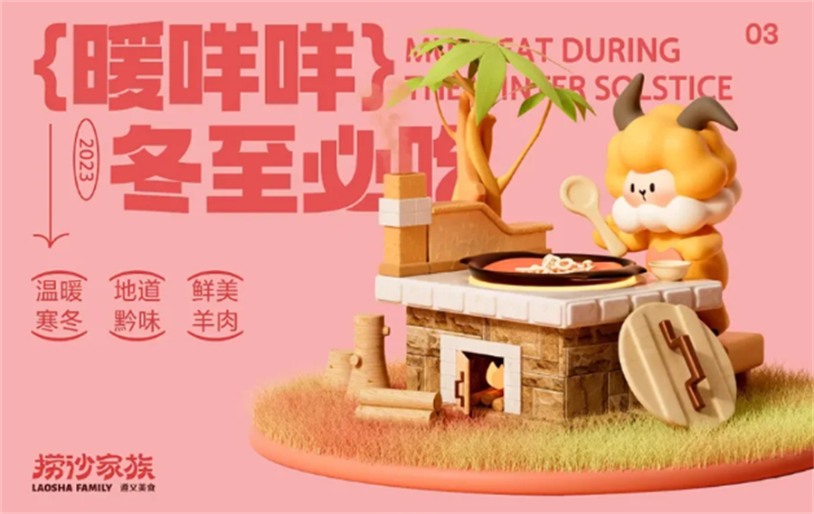 撈沙家族ip形象設(shè)計(jì)是一群來自貴州遵義的小伙伴,家族里總共有五個(gè)主要人物,分別代表著遵義最具特色的美食之一。下面來簡單介紹一下吧!暖咩咩代表冬至必吃的羊肉粉;鍋哥代表萬物皆可烙的烙鍋;豆寶代表白白嫩嫩的豆花面,BOBO雙生子代表戀人常在一起吃的戀愛豆腐;方憨憨代表口感厚實(shí)的雞蛋糕。