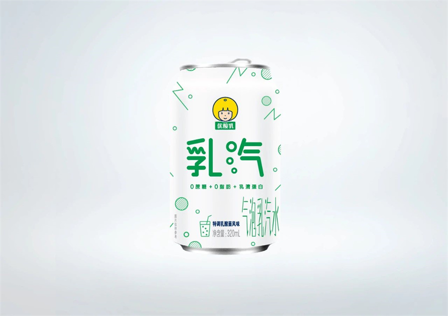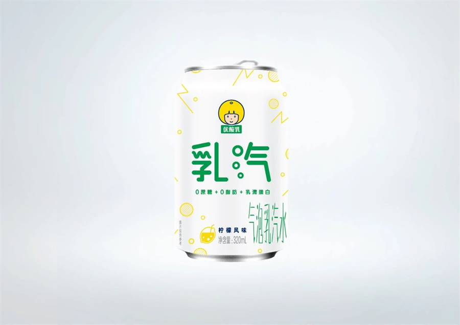 設計:GRANDDESIGN伊利優酸乳夏季推出的新品“乳汽”鋁罐飲品包裝設計,牛乳+氣泡,在市場上已常見的“0蔗糖、0脂肪”特點之上,添加“乳清蛋白”,打造全新的“氣泡乳”新品類。