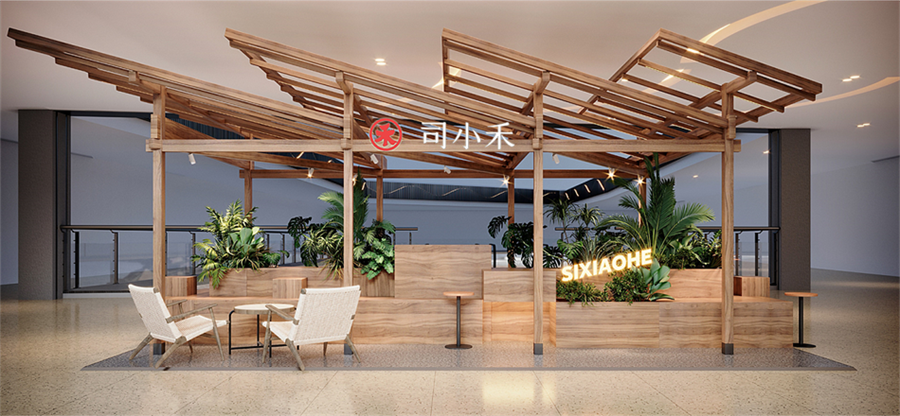今天跟大家分享的這組烘焙品牌空間設(shè)計(jì),為一個(gè)雙層烘焙空間設(shè)計(jì),可滿足較多人數(shù)同時(shí)進(jìn)店選購餐品。室內(nèi)烘焙空間設(shè)計(jì)采用原木材料搭配杏色、土色的墻面,營造了一個(gè)清新、自然的烘焙空間。二樓的室外空間設(shè)計(jì)同樣利用原木材料,搭建了一個(gè)露營空間,符合時(shí)下年輕人熱門的休閑需求,增加消費(fèi)者好感。
