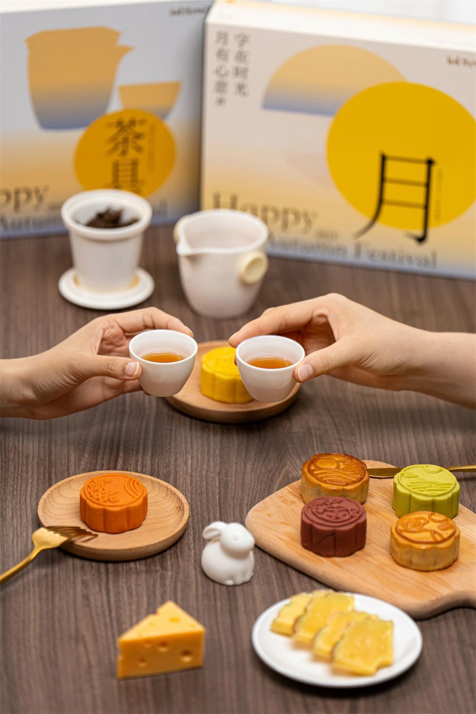 字節(jié)跳動(dòng)2023年中秋禮盒包裝設(shè)計(jì)主題為“字在時(shí)光,月有心意”。打開禮盒包裝,上層為月餅禮盒,下層為茶具禮盒,有一套茶具和6泡白茶,希望在中秋佳節(jié)為大家送上美好祝福。