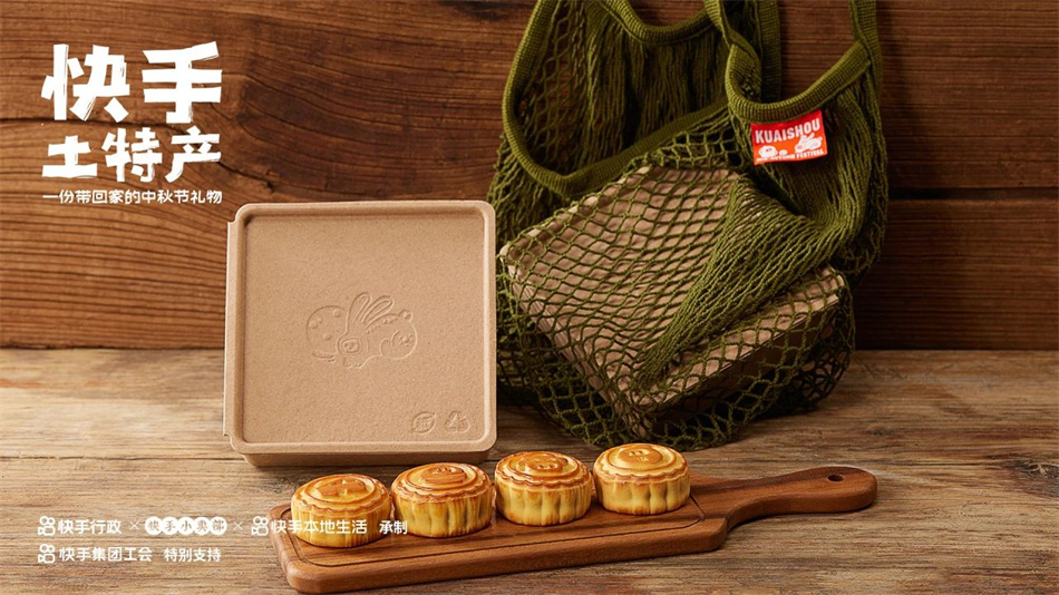 2023年快手中秋禮盒包裝設計還采用了環保的紙漿盒,最后也會降解,回歸于土。