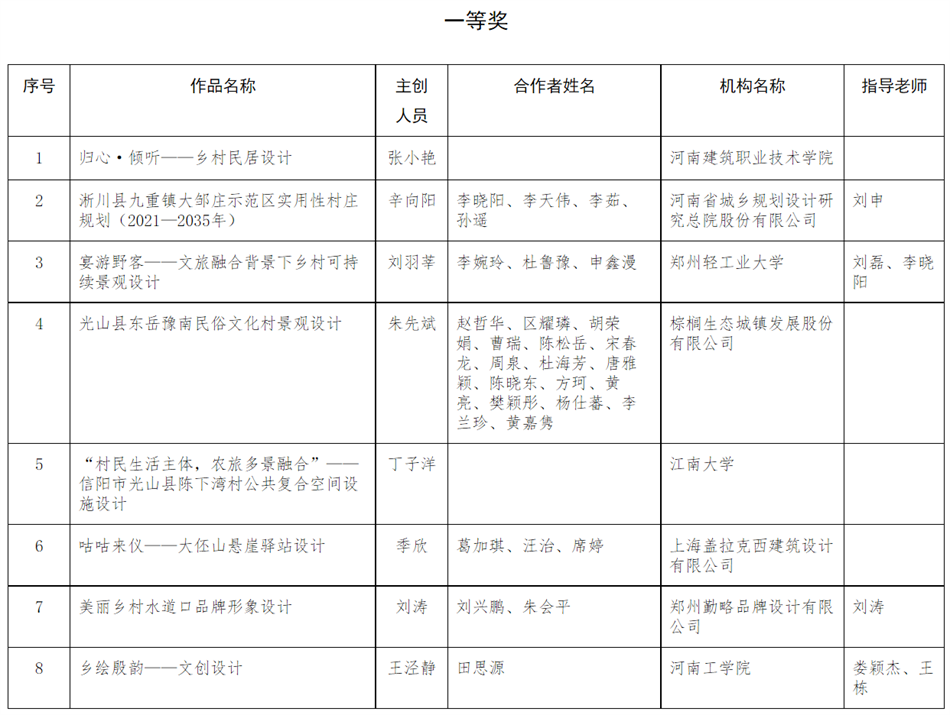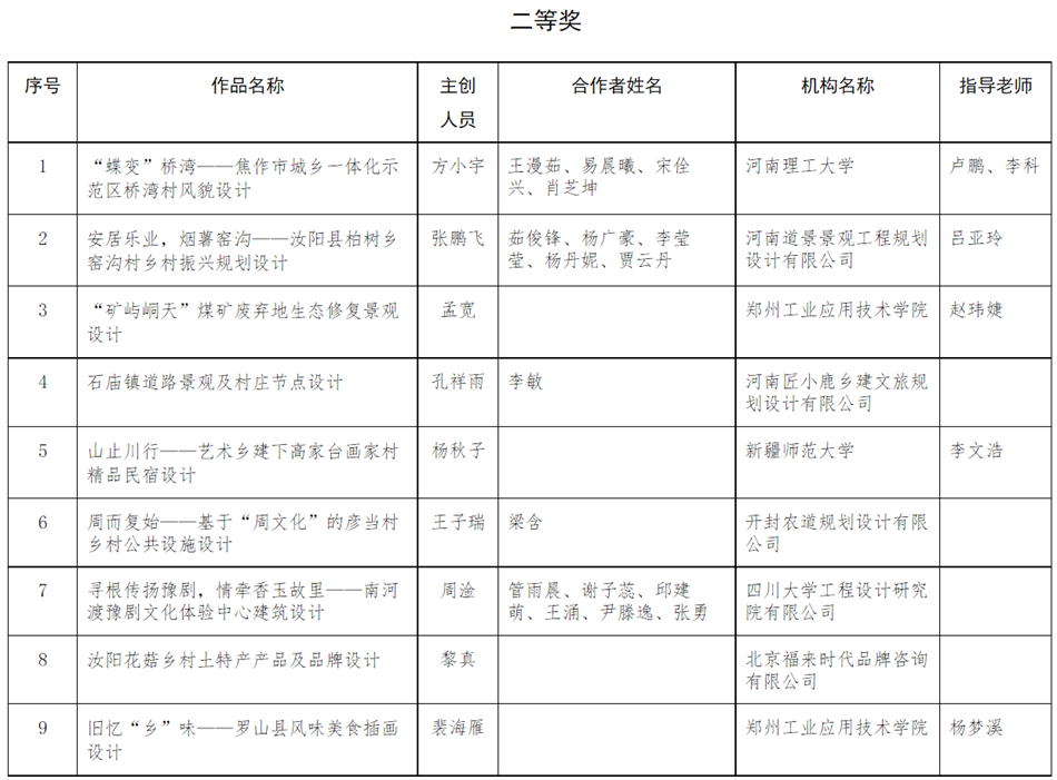 據(jù)了解,根據(jù)印跡鄉(xiāng)村創(chuàng)意設計大賽組委會《印跡鄉(xiāng)村創(chuàng)意設計大賽章程》《印跡鄉(xiāng)村創(chuàng)意設計大賽賽制》《第三屆印跡鄉(xiāng)村創(chuàng)意設計大賽方案》要求,按照《河南省農(nóng)業(yè)農(nóng)村廳 河南省教育廳 河南省工業(yè)和信息化廳 河南省自然資源廳 河南省住房和城鄉(xiāng)建設廳 河南省文化和旅游廳 河南省鄉(xiāng)村振興局 關于舉辦“設計河南?美麗鄉(xiāng)村”創(chuàng)意設計大賽(第三屆印跡鄉(xiāng)村創(chuàng)意設計大賽河南賽)的通知》(豫農(nóng)文〔2023〕214號)安排,經(jīng)過組織專家評審,共評選“設計河南?美麗鄉(xiāng)村”創(chuàng)意設計大賽獲獎作品49個。