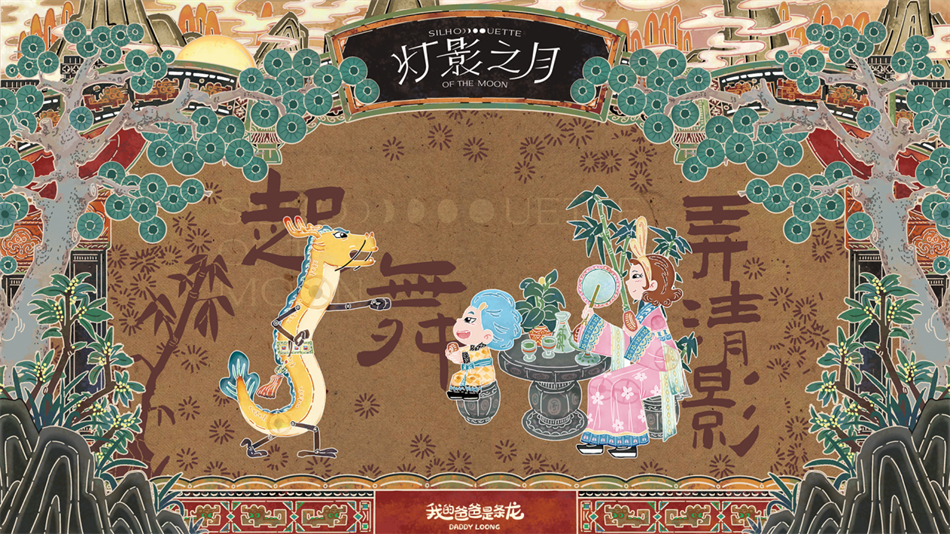 網(wǎng)易傳媒推出中秋禮盒包裝設(shè)計(jì)燈影之月,以傳統(tǒng)文化藝術(shù)“皮影戲”為靈感,集合皮影繪畫(huà)以及皮影演藝的美學(xué),將傳統(tǒng)技藝再次以輕量、有趣的形式帶入大眾視野。同時(shí)結(jié)合網(wǎng)易傳媒旗下頭部 IP “我的爸爸是條龍”系列人物形象——“龍爸“、“龍媽”、“東東” 一家人,打造溫馨歡樂(lè)的中秋場(chǎng)景。