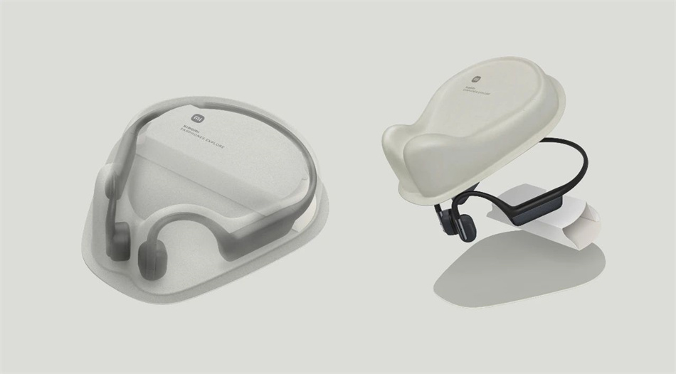 小米骨傳導(dǎo)耳機(jī)包裝設(shè)計(jì)別出心裁,它區(qū)別于傳統(tǒng)的幾何外觀,特別采用由竹子、甘蔗廢料制作的天然纖維,按照耳機(jī)的造型壓模而成。這款耳機(jī)包裝設(shè)計(jì)所使用的模制天然纖維解決方案可應(yīng)對(duì)復(fù)雜的極簡(jiǎn)產(chǎn)品包裝要求。對(duì)耳機(jī)的復(fù)雜線條進(jìn)行包裝是一項(xiàng)挑戰(zhàn),因?yàn)檫@要求包裝材料具有高效、起保護(hù)作用,并突出科技與藝術(shù)的融合。包裝利用了紙漿模塑的可塑性,外形模仿了耳機(jī)產(chǎn)品的輪廓,使整件作品就像一件量身定做的外套,將產(chǎn)品緊緊包裹起來(lái),同時(shí)兼顧了功能和美觀的特點(diǎn)。