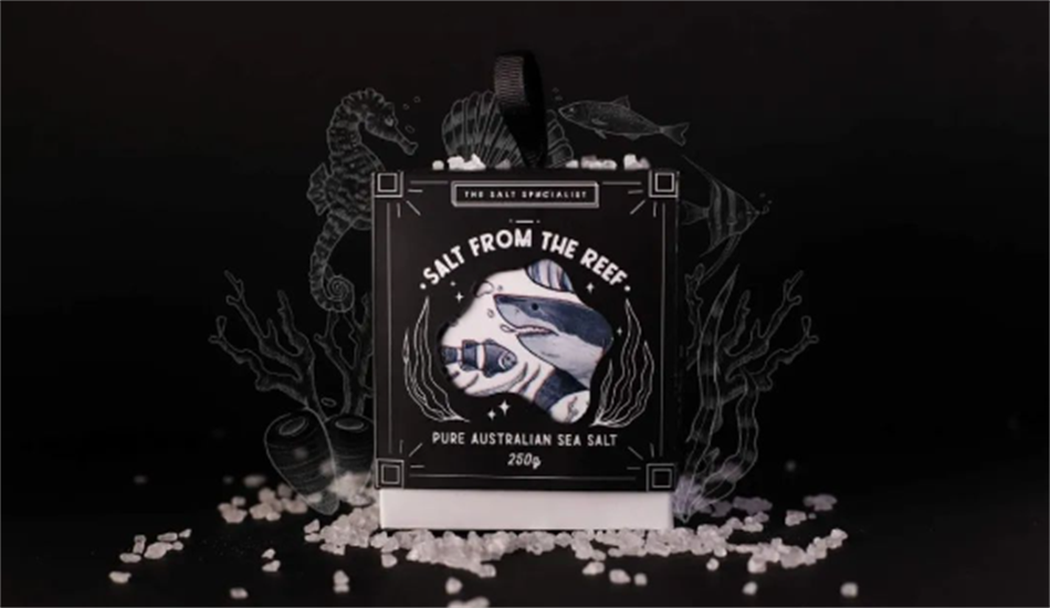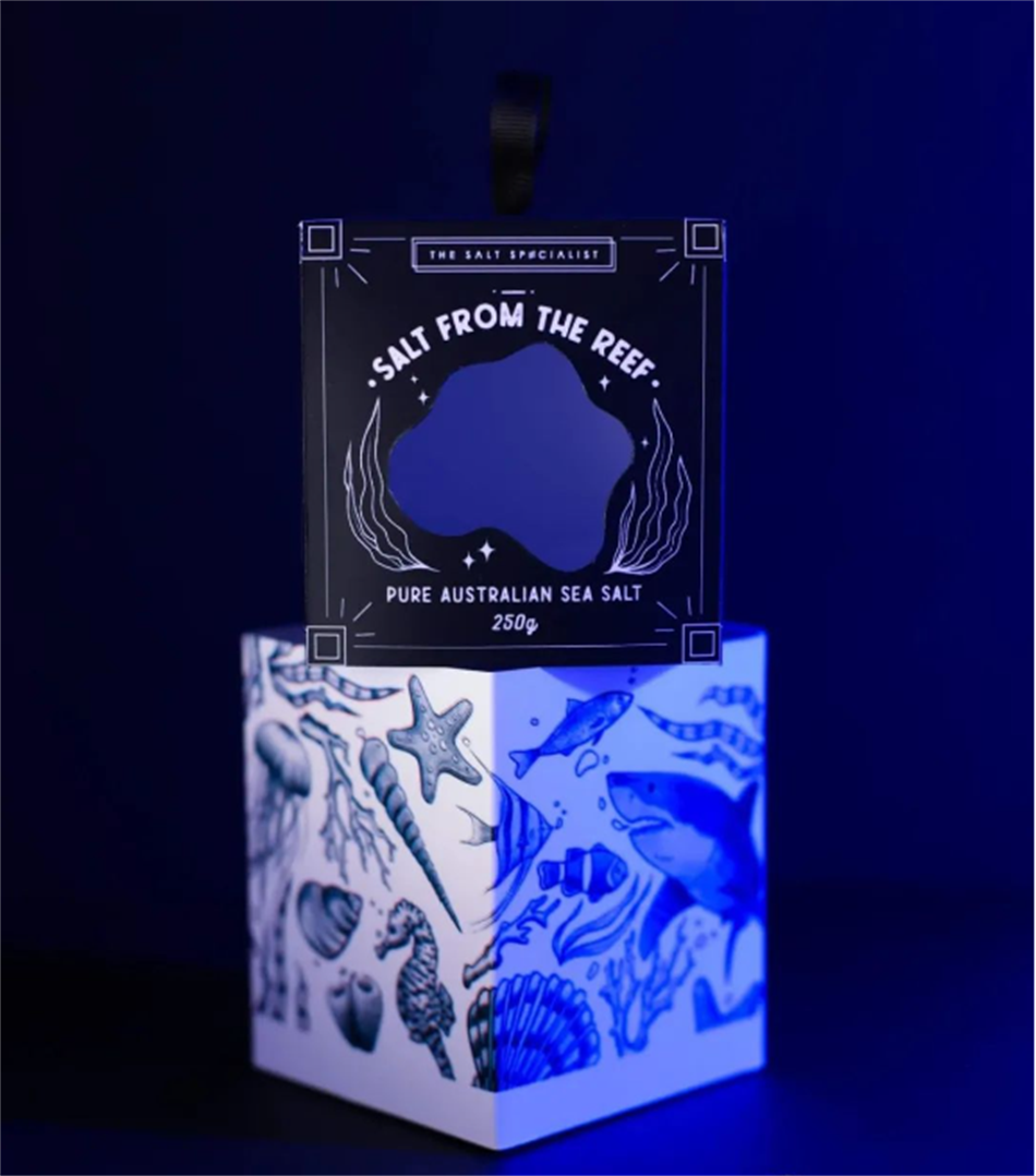 SALT FROM THE REEF 海鹽包裝設計為來自大堡礁的海鹽設計包裝。該海鹽產品將在澳大利亞機場獨家銷售,主要面向游客。