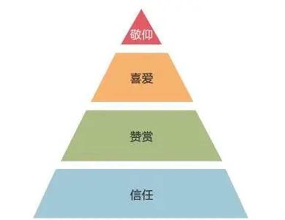 可以說,無情感就無品牌。而且,這種品牌情感可以歸結為四類:“信任”情感、“贊賞”情感、“喜愛”情感和“敬仰”情感。這四種品牌情感的強度逐級升高,形成一個“品牌情感金字塔”。品牌情感的這種升級過程和異性之間的情感發(fā)展很相似,都從“信任“開始,然后在逐步交往中,上升為“贊賞”,“喜愛”,甚至“敬仰”。