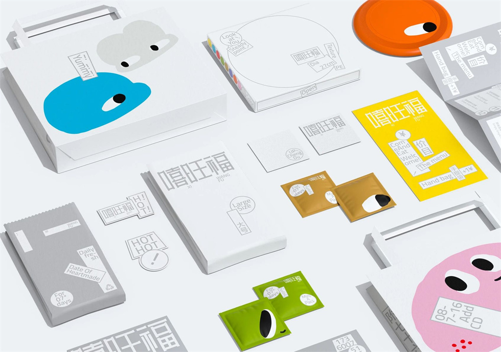 嘻旺福老面發酵手作面包包裝設計的文字資訊的“標簽化”歸檔,是對傳統印刻的現代化處理,保有中國消費者關于“品質認證”的情感動因,在應用層面達成了資訊組合的靈活性,以應對不同的使用場景,對應“恒定規則”。例如新品發布時只需增設一個新的“標簽”,實現低成本維運。隨性的酵母圖形設計,是對“老面”特性的詮釋,雖稱“老面”,卻需像對待小孩般持續關注與呵護,作為品牌最核心的特征與資產,我們賦予其個性,反應使用者在其間輕松享受的感覺,它們是將產品與使用者連接的情感媒介,亦制衡常規的排版設計,對應“隨機驚喜”。市場上的同類面包品牌,多數僅站在原料、工藝的視角,我們在此基礎上更強調消費者的體驗,制造產品之外的情感預期。以此形成的視覺,對使用者而言,便不是自上而下的教育,而是更平等輕松的對話。