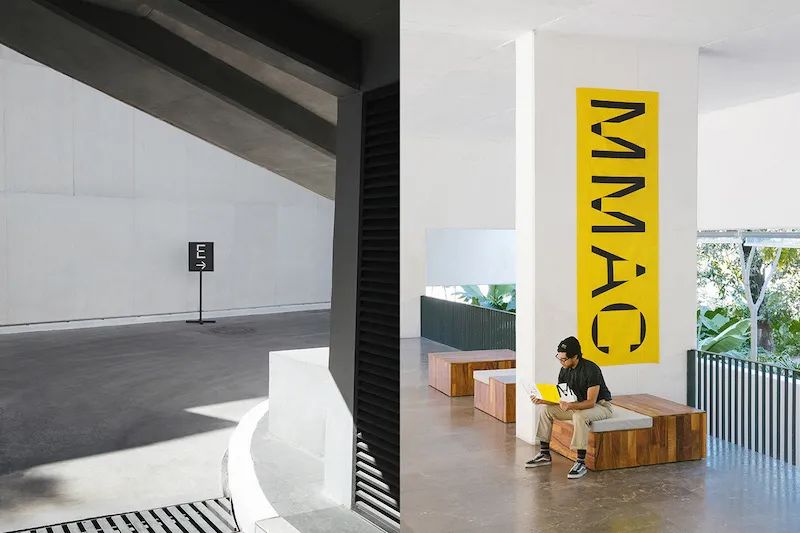 設計師通過添加方形切口設計了個性強烈的無襯線字體,其靈感來自Morelense當代藝術博物館建筑上具有特色的窗戶。Icon的設計也加入了方形切口,完善了圖形的細節。立式標牌的方形切口采用鏤空處理,展現了導視系統的特色。采用黃色和黑色作為博物館導視系統設計主色調,紅色、綠色和藍色作為輔助色,信息層級明確,整體視覺設計效果佳。