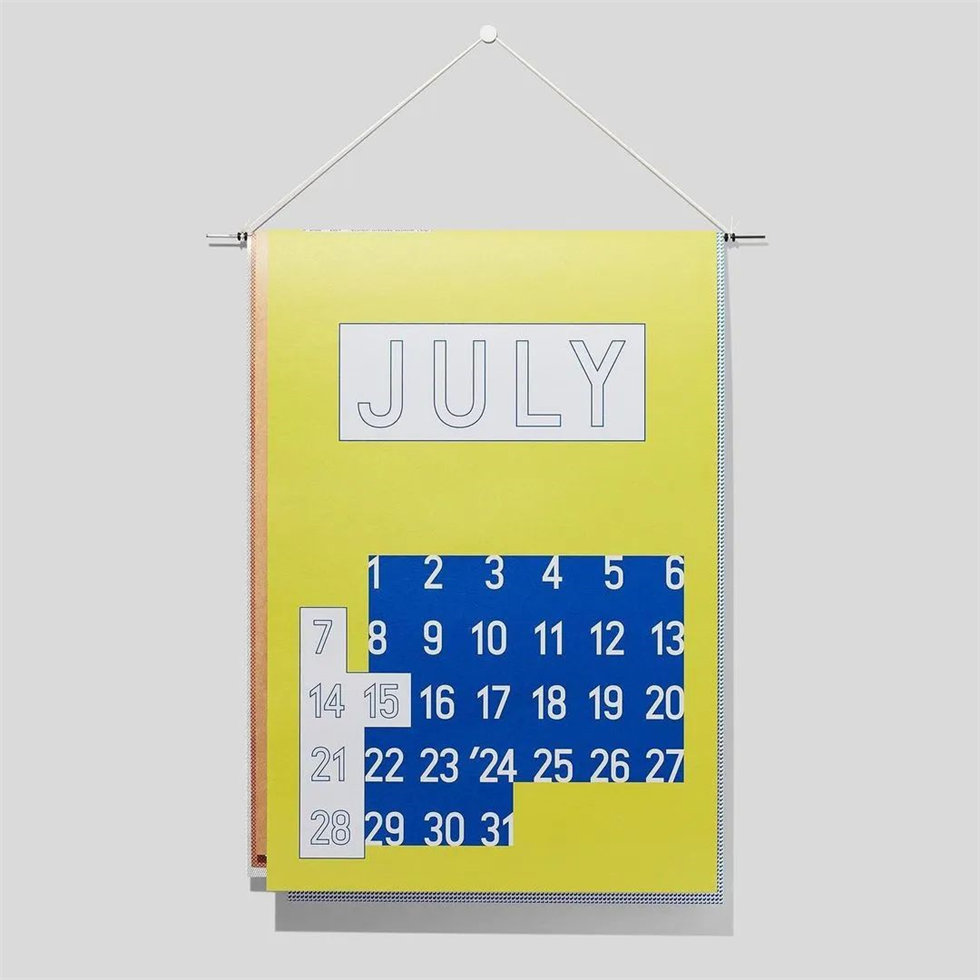 由日本設計師渡邊良重與植原亮輔合作創立的設計師獨立品牌D-BROS,每年都會推出幾款獨具代表性的日歷。植原亮輔的日歷設計一向沒有規則,他傾向于塑造“模糊地想象未來”的理念。這款由植原亮輔設計的2024年掛墻日歷“TOMORROWS”(明天)由6頁不同尺寸、不同紋理的紙張組成,營造出獨具一格的趣味感。