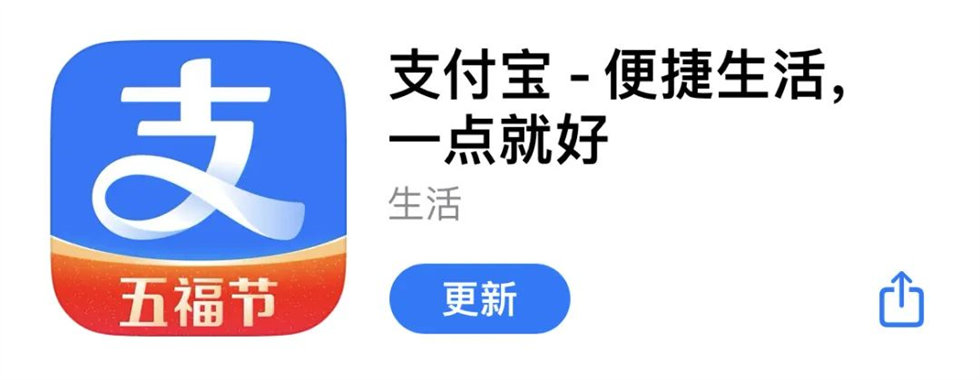 目前App上已更新了全新支付寶Logo,并加有“五福節”的字樣。
