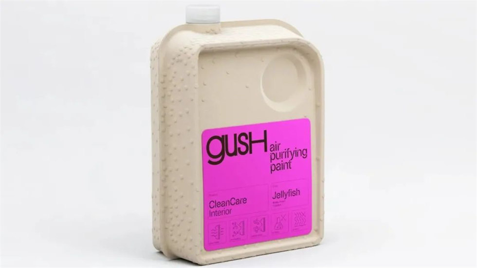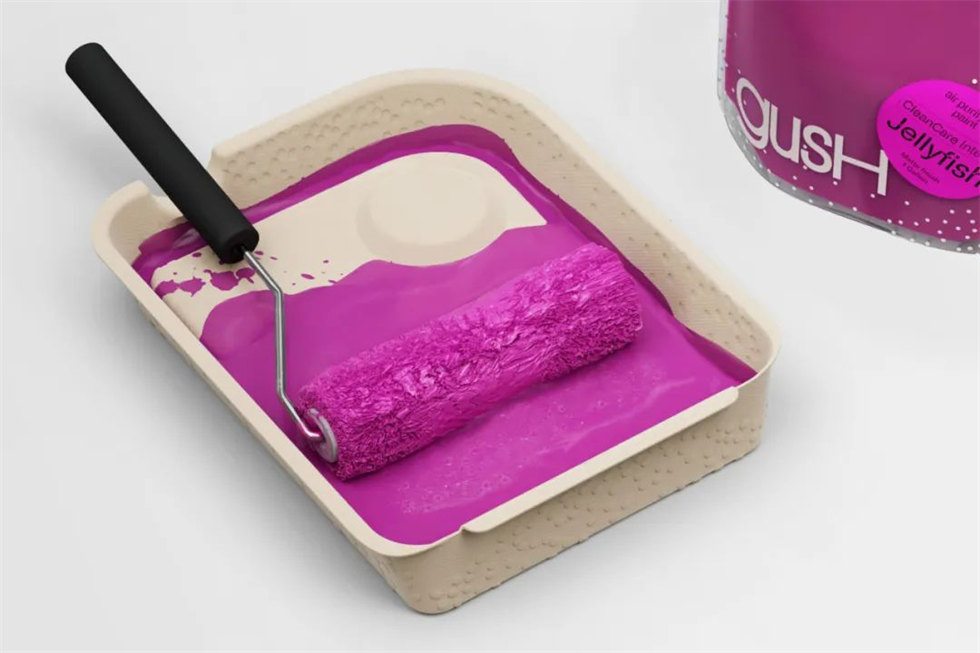 總部位于新加坡的Gush公司生產(chǎn)的一種品牌涂料不僅不含voc,還能被動地清除空氣中的這些化合物。最近,Gush找到了五角星公司(Pentagram)有才華的人來更新自己的涂料品牌包裝設(shè)計,創(chuàng)造了一種身份,強化了這樣一種觀念:個人采取的小行動,比如選擇一種凈化涂料,可以共同推動有意義的變革。