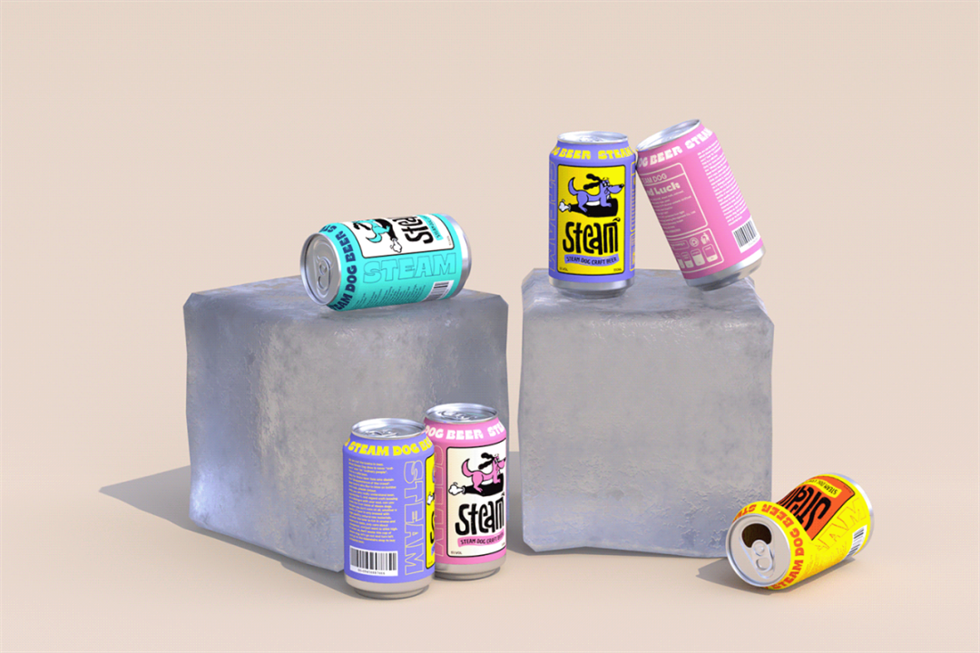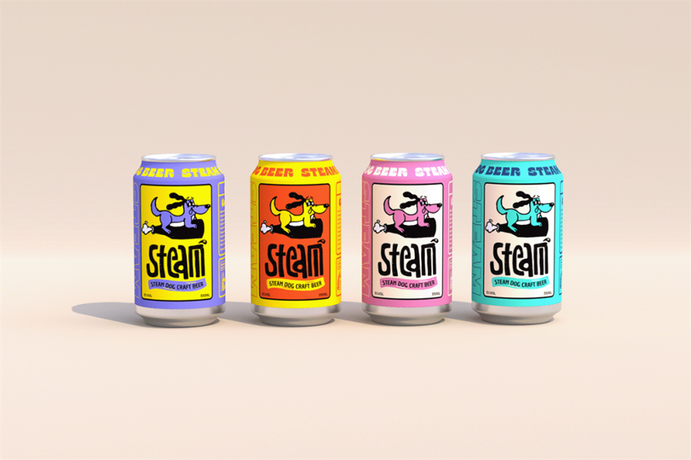 STEAM CRAFT BEER精釀啤酒罐裝設(shè)計上,提取高飽和度的鮮明色彩做標(biāo)貼,塑造產(chǎn)品活力、張揚的個性。