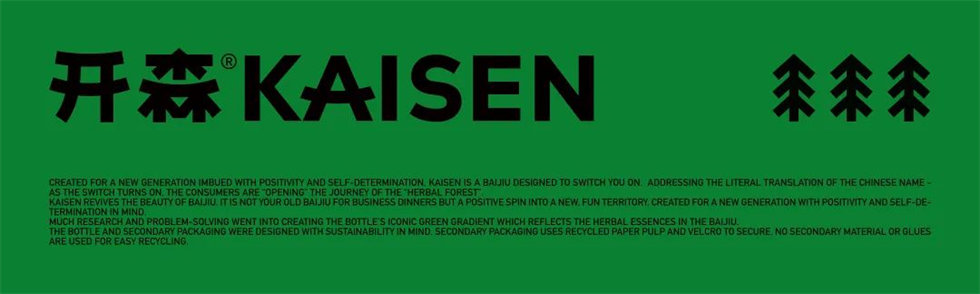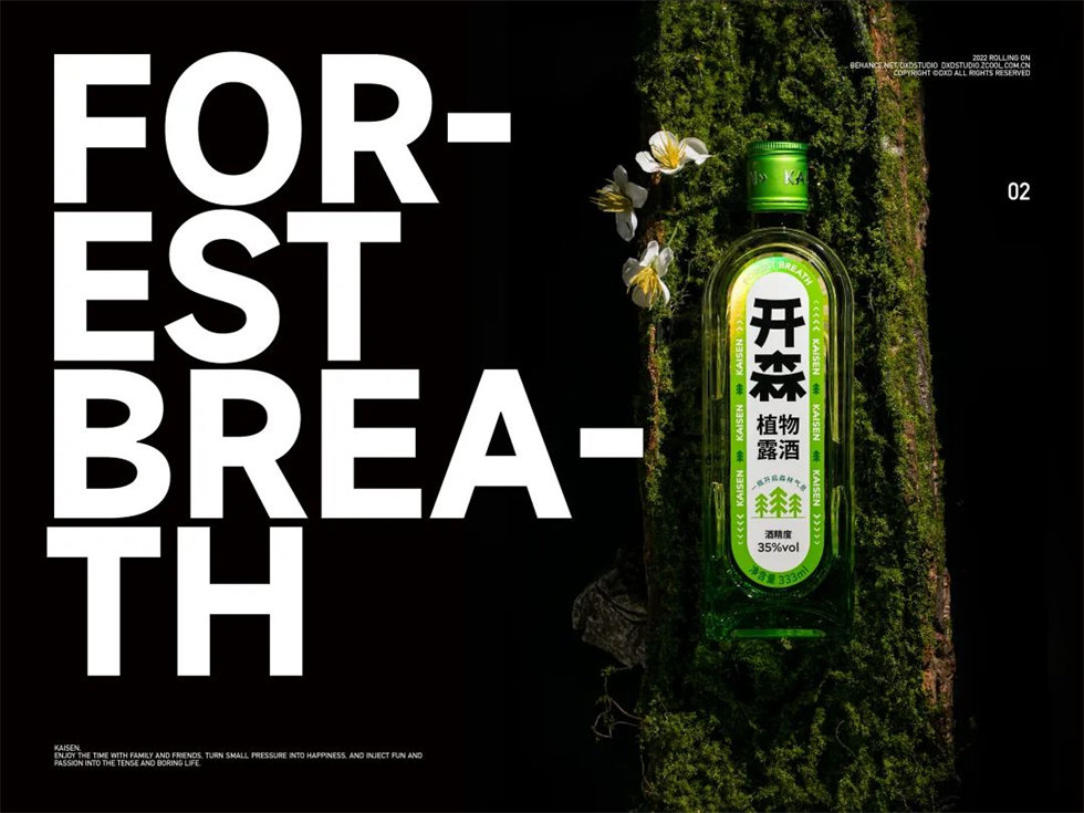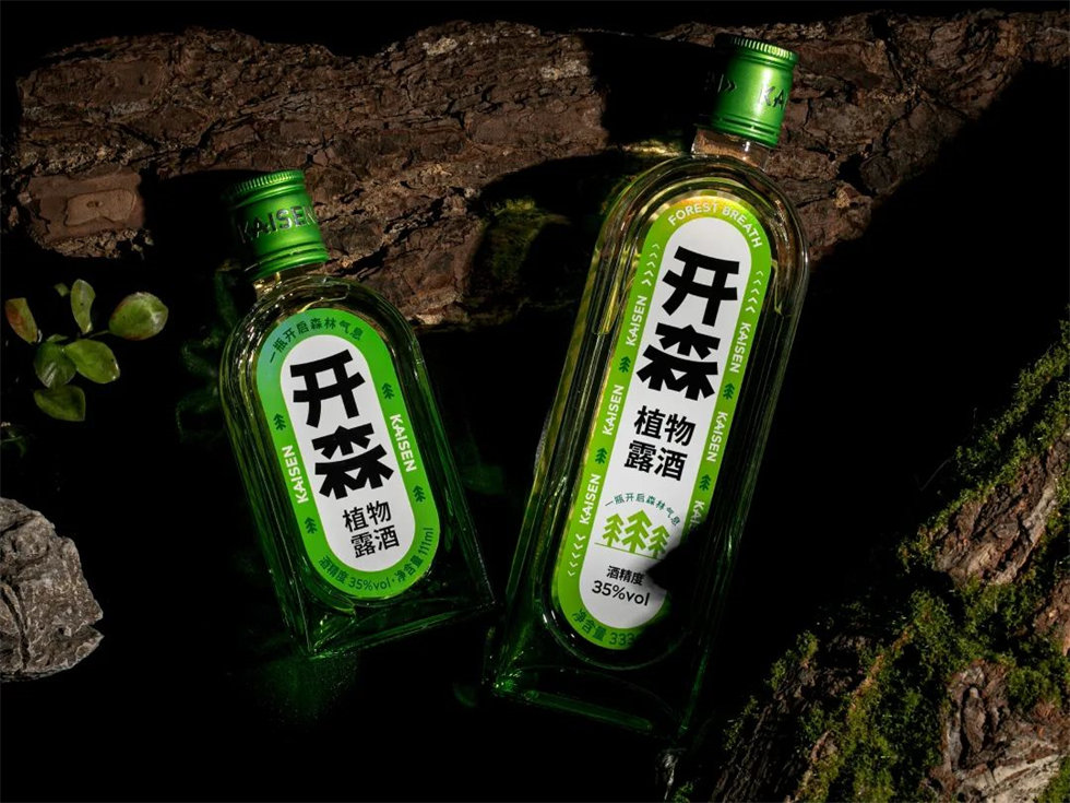 而在白酒瓶身設計上采用獨特的綠色彰顯品牌的森林氣息,與富含草藥精華的酒體互為襯托,從視覺到味覺等感官維度,都讓你“開森”。