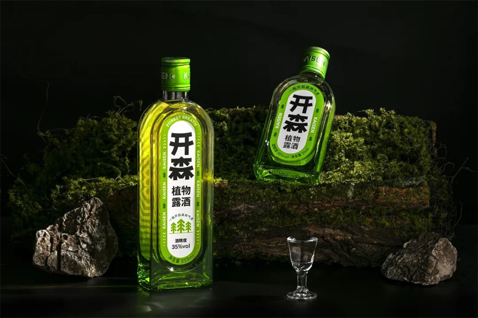 而在白酒瓶身設(shè)計(jì)上采用獨(dú)特的綠色彰顯品牌的森林氣息,與富含草藥精華的酒體互為襯托,從視覺到味覺等感官維度,都讓你“開森”。