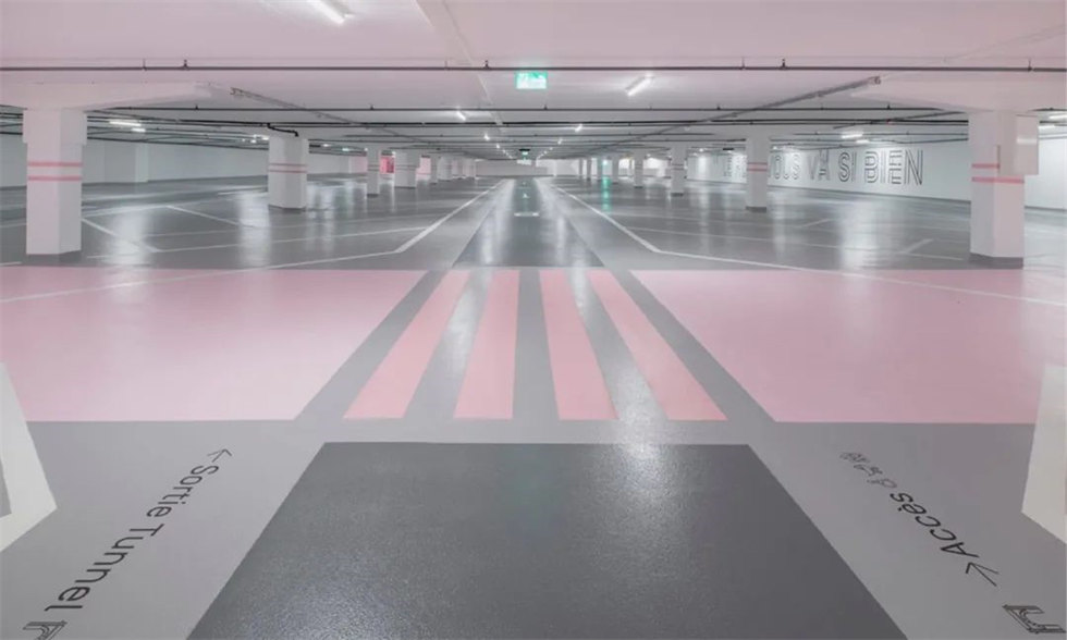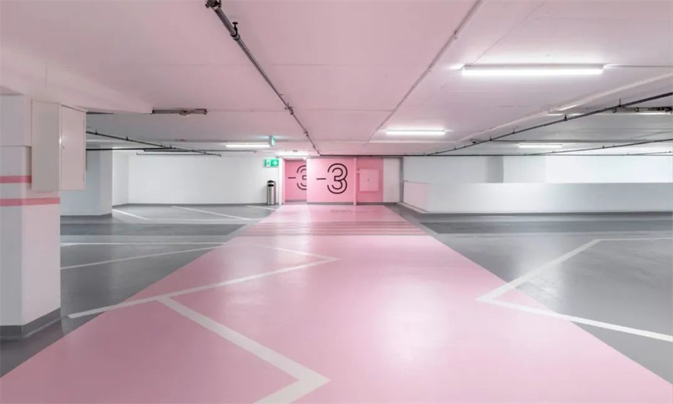 在停車場環境設計中,行人是首要考慮的因素,然后再規劃出車輛路徑,以配合其駕駛員。每一停車樓層都因大量使用淺玫瑰色、開心果綠等柔和色彩而展現出全新的生機;墻壁和地板上的方向標志則伴隨著行人穿越整個停車空間;此外還有外立面的植物、明亮的天花板、舒適而現代的休息室等。
