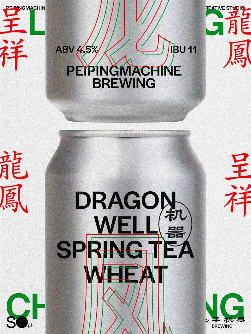 2024北平機器新年酒禮盒包裝設計采用了麻將經典的紅綠配色,以龍爪緊握啤酒罐的“龍”,以及尾巴搖曳生長出啤酒花的“鳳”作為主視覺包裝設計,整體酒禮盒包裝設計風格簡單強烈,圖層錯位重疊,營造出眼花繚亂的賽博微醺感。創意及美學合作伙伴 So Creative Studio
