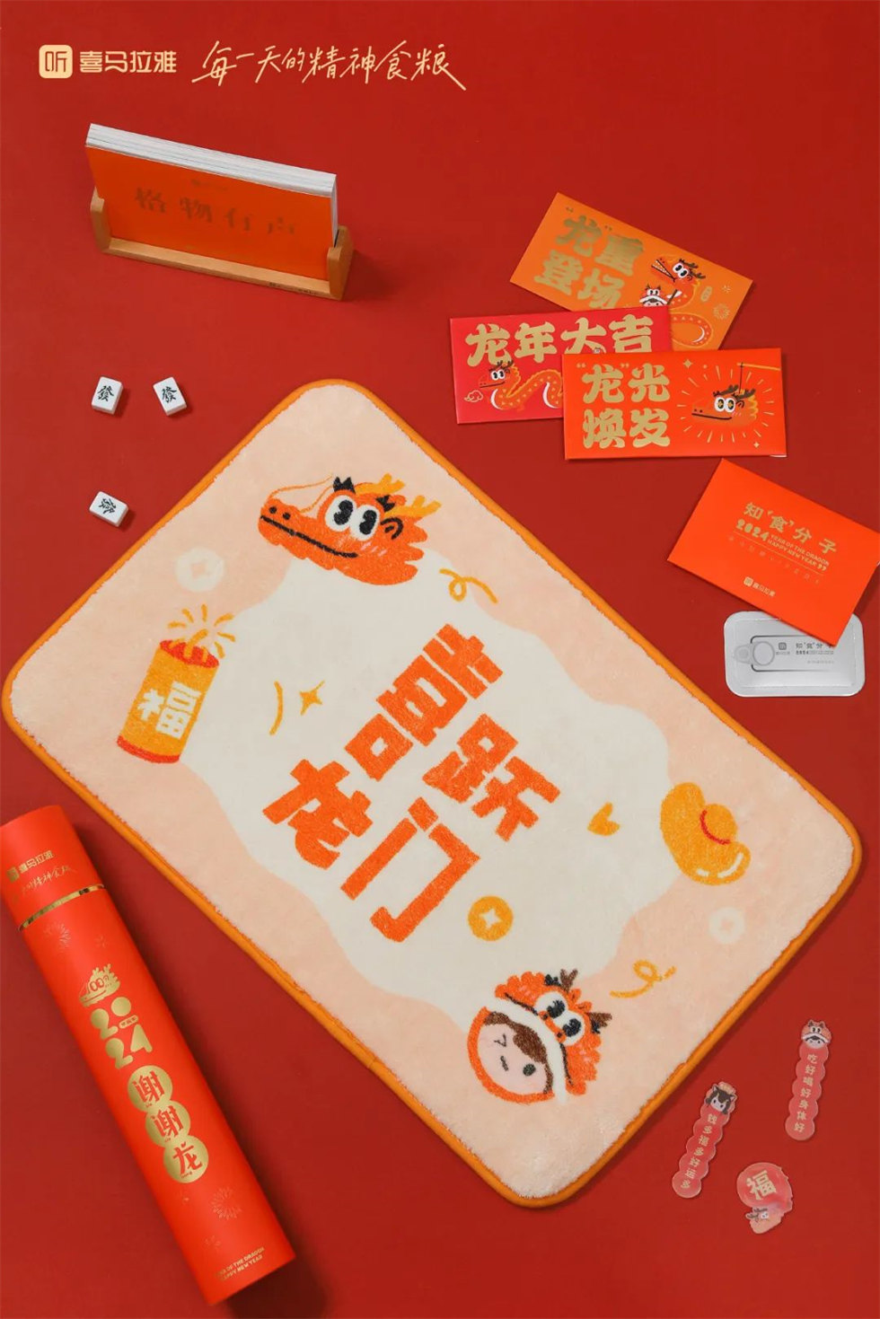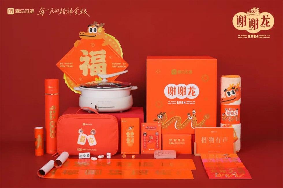 喜馬拉雅2024新年禮盒包裝設計以謝謝龍為設計主題,謝謝龍同音「謝謝你(儂)」,期待神龍帶來好運。