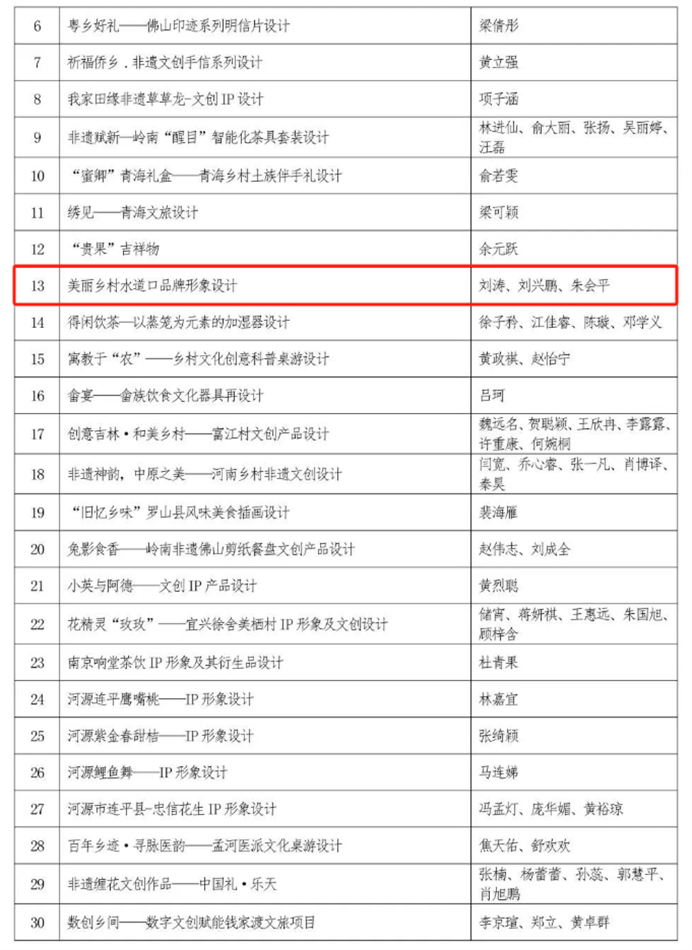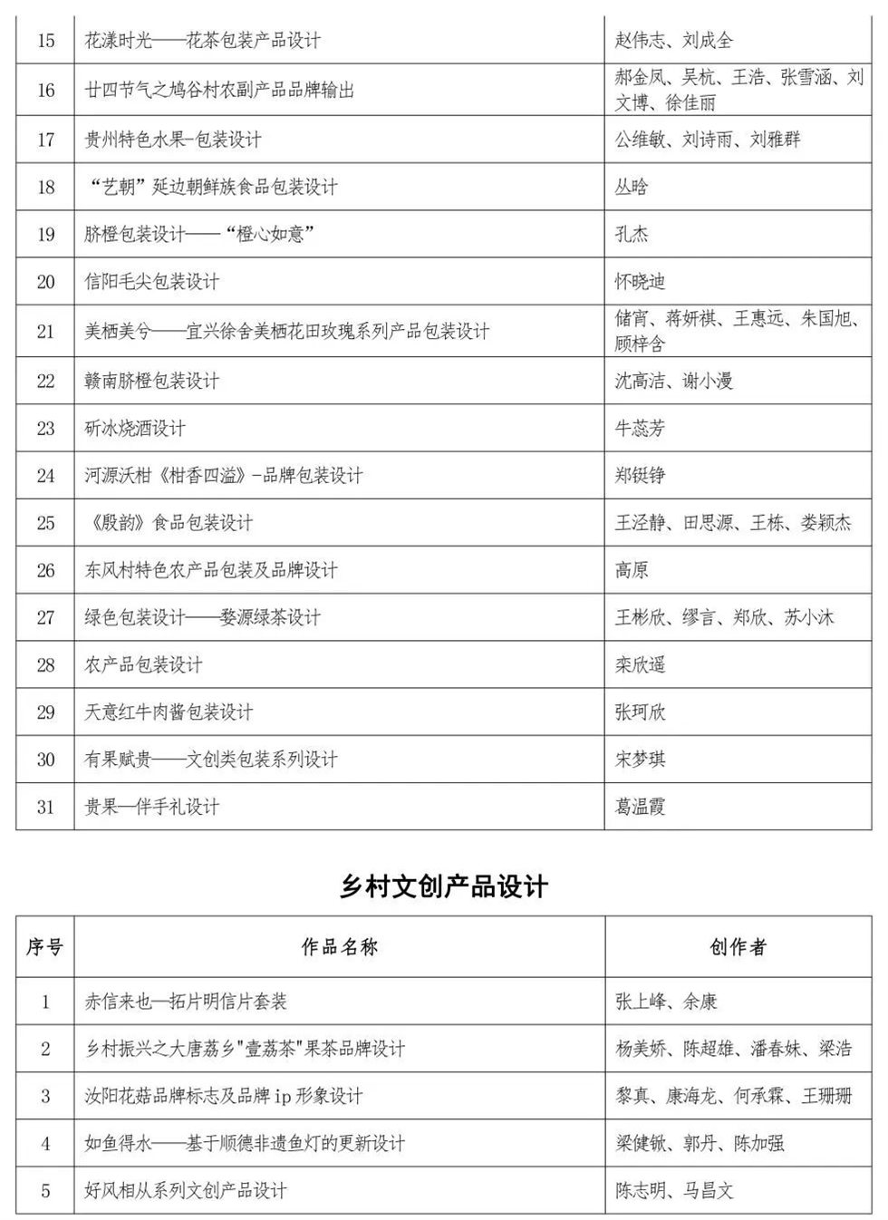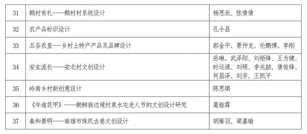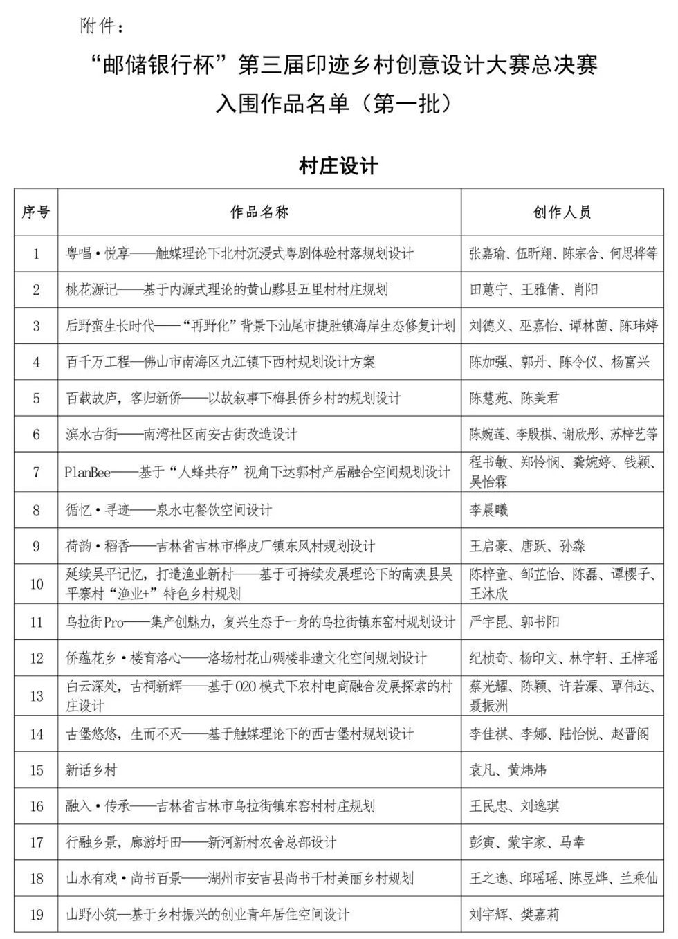 附件:“郵儲銀行杯”第三屆印跡鄉村創意設計大賽總決賽入圍作品名單(第一批)