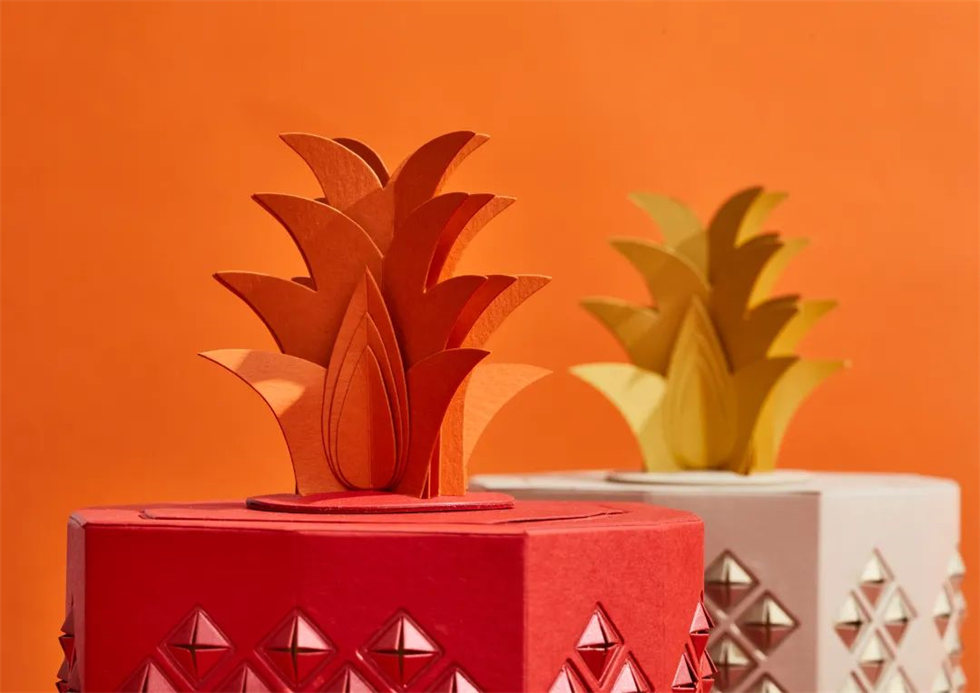 令人驚嘆的觸覺和精確工程的這種結合將菠蘿糖果包裝設計提升到了一個新的水平。拆箱的經驗向我們表明,紙張不僅提供了結構。它也可能是歡樂和驚奇的根源。這款用于菠蘿糖果的多層包裝盒模仿菠蘿的形式和質地,同時玩懸掛式拆箱。(評委寄語)