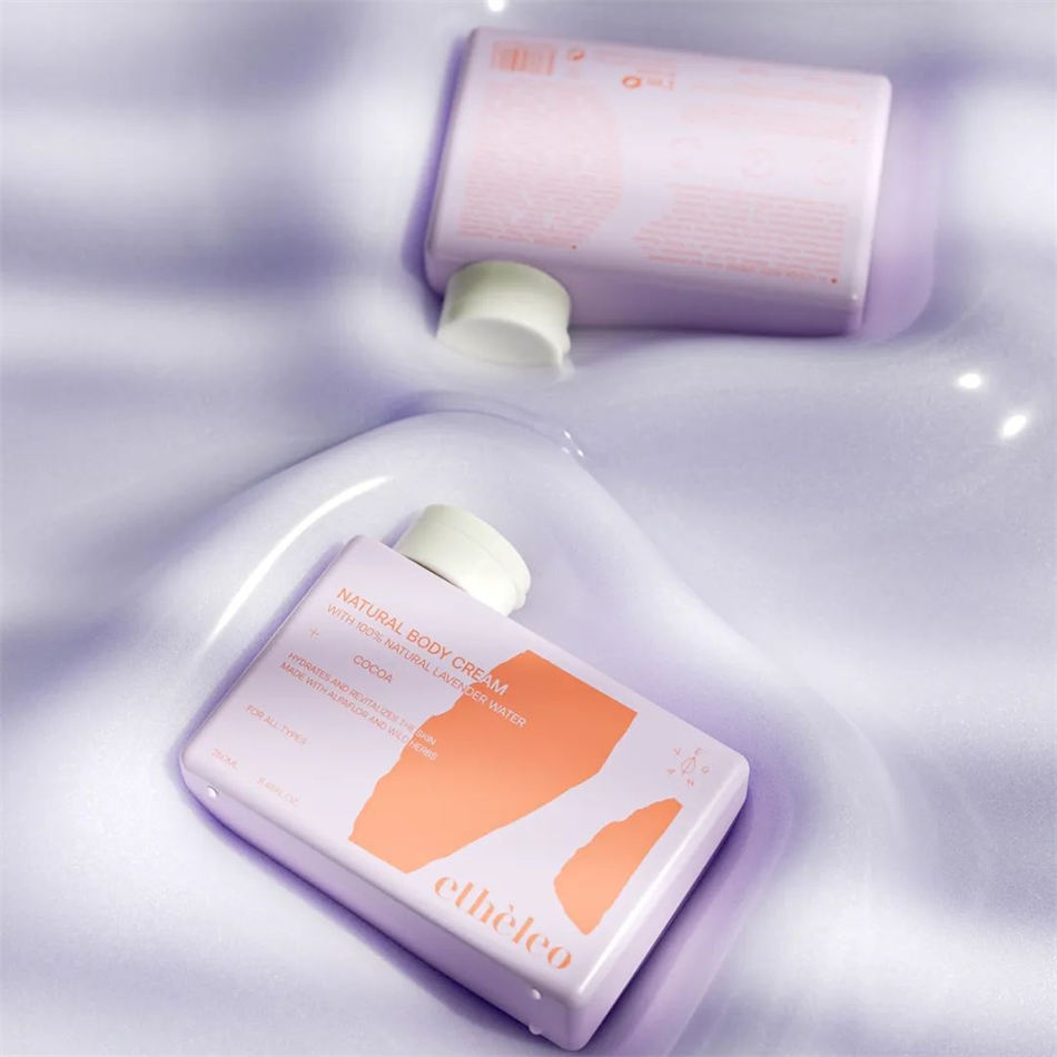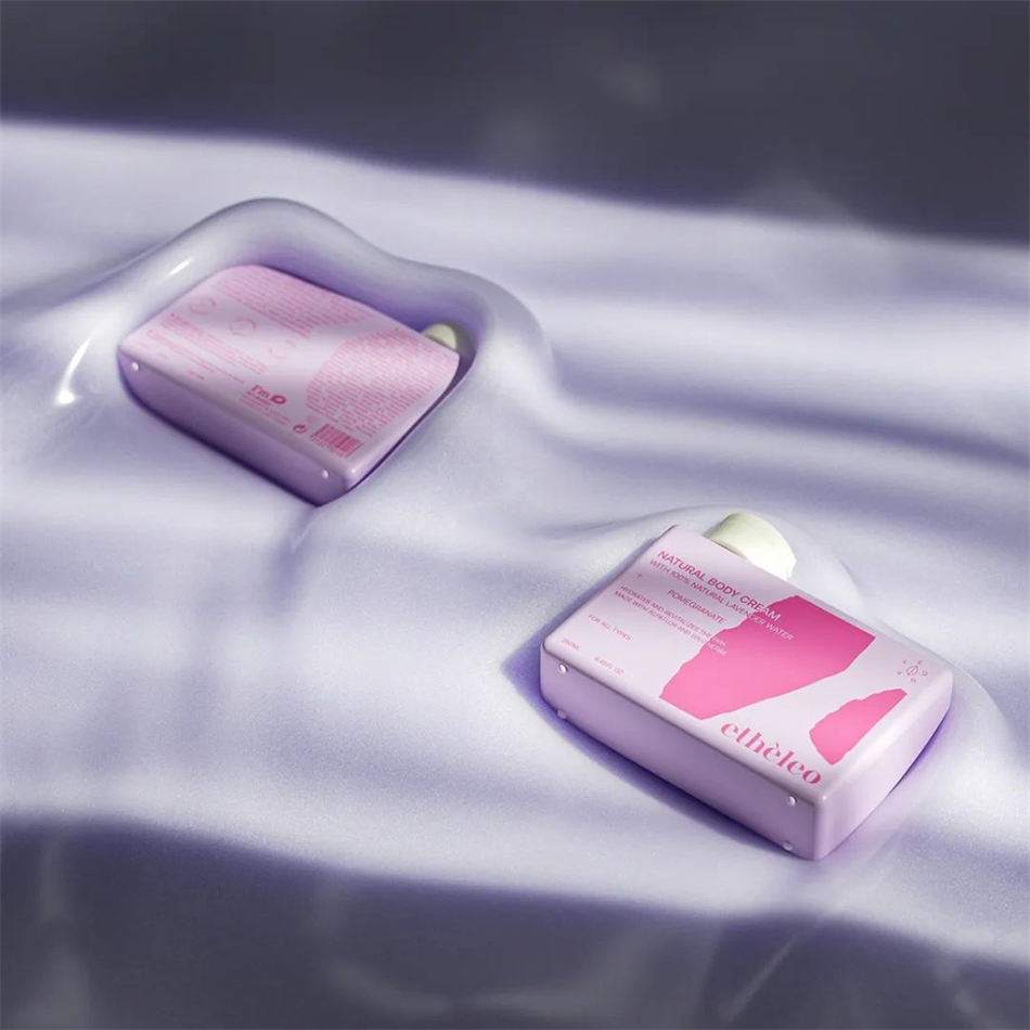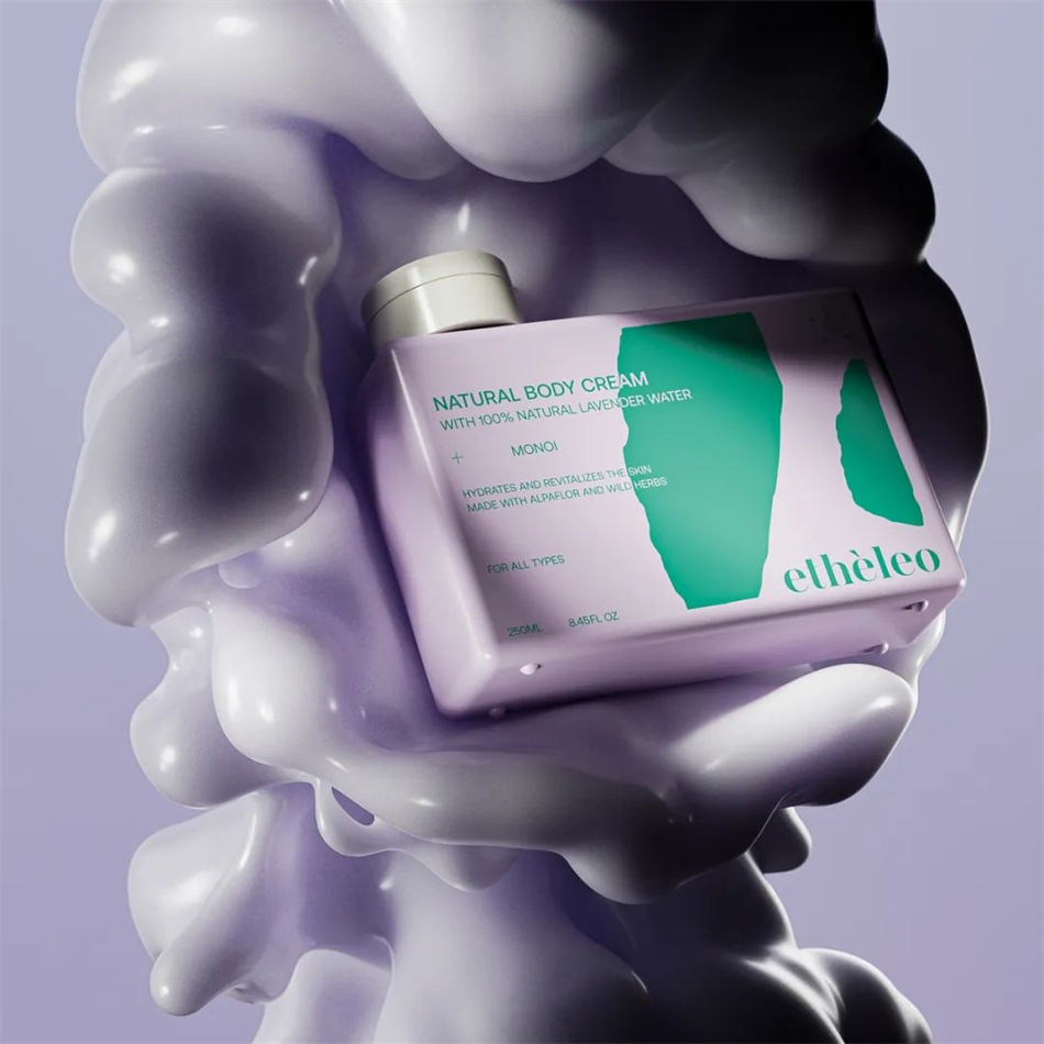 從薰衣草田和霓虹燈中提取的色彩與羅塞塔巖石的自然形態和優雅無縫協調,塑造了此次Etheleo沐浴露包裝設計項目的設計和文案。在這個沐浴露系列包裝設計中,簡單不僅僅是一種風格,這是一種塑造每一個細節的哲學,確保了一個復雜的視覺故事。