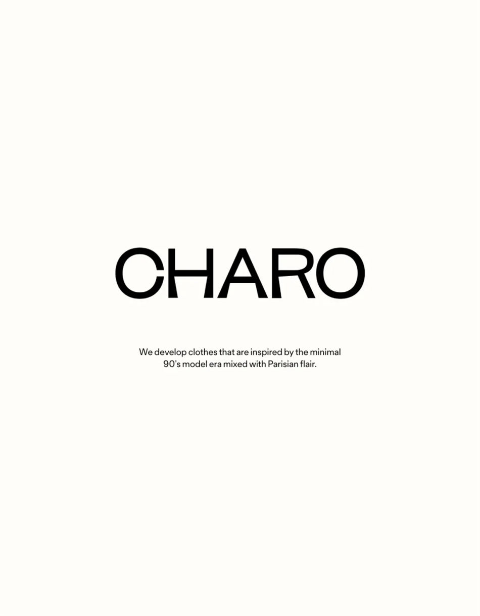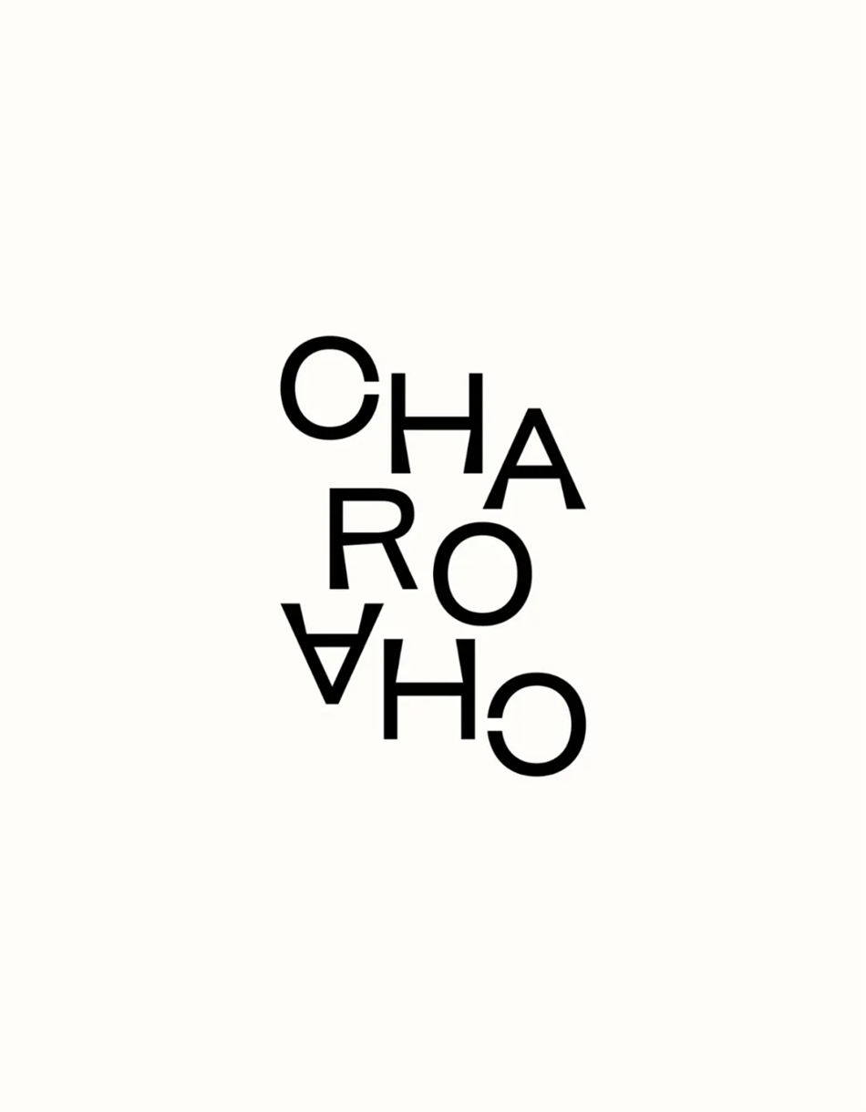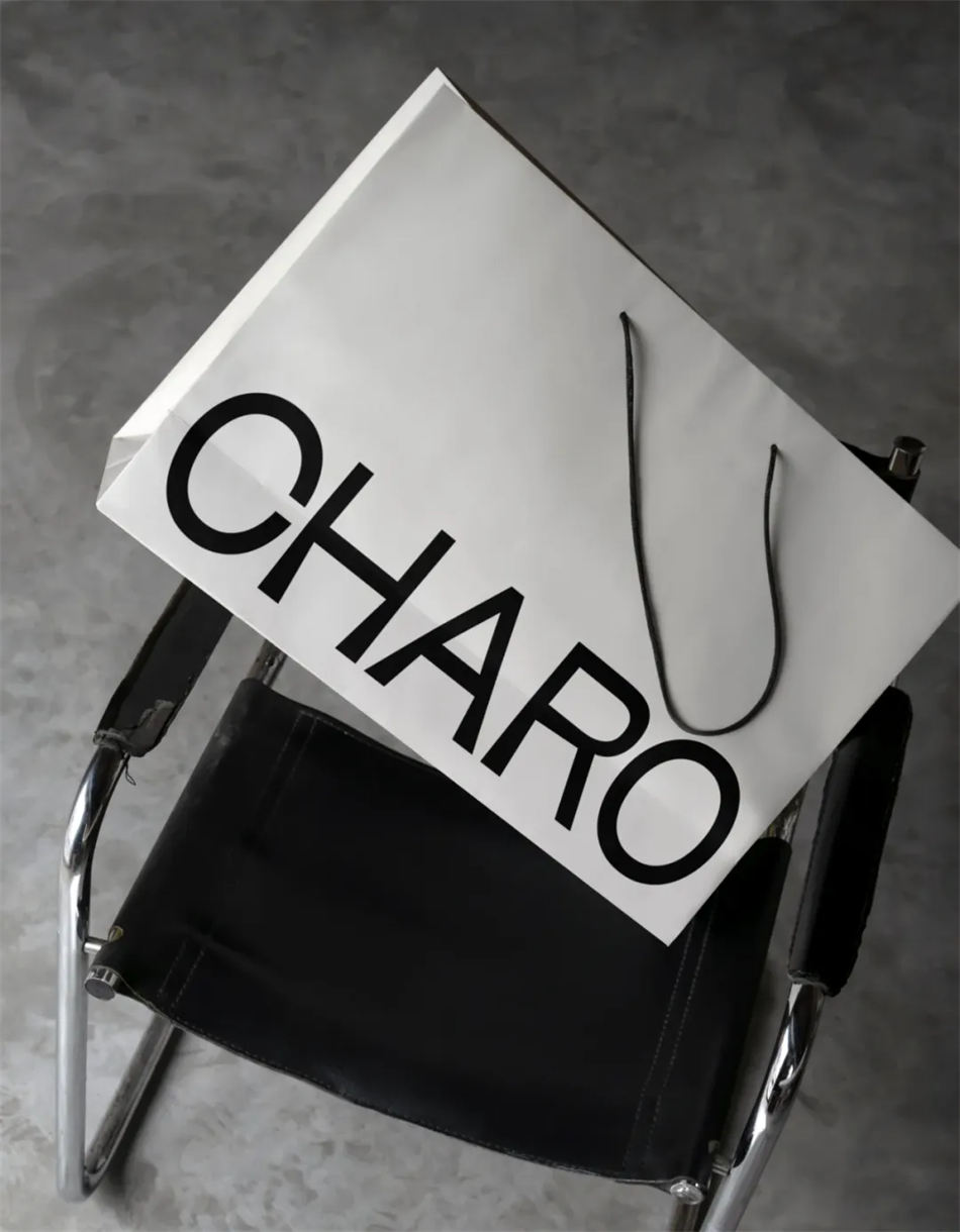 CHARO 的 logo 分為三種形態: 軸對稱式的全名、全名和圖形標志,以冷靜、隨行的方式呈現時尚的感受和精致的風格,用時尚和風格這種非語言的交流方式,傳遞美麗伴隨著自信和積極的能量。