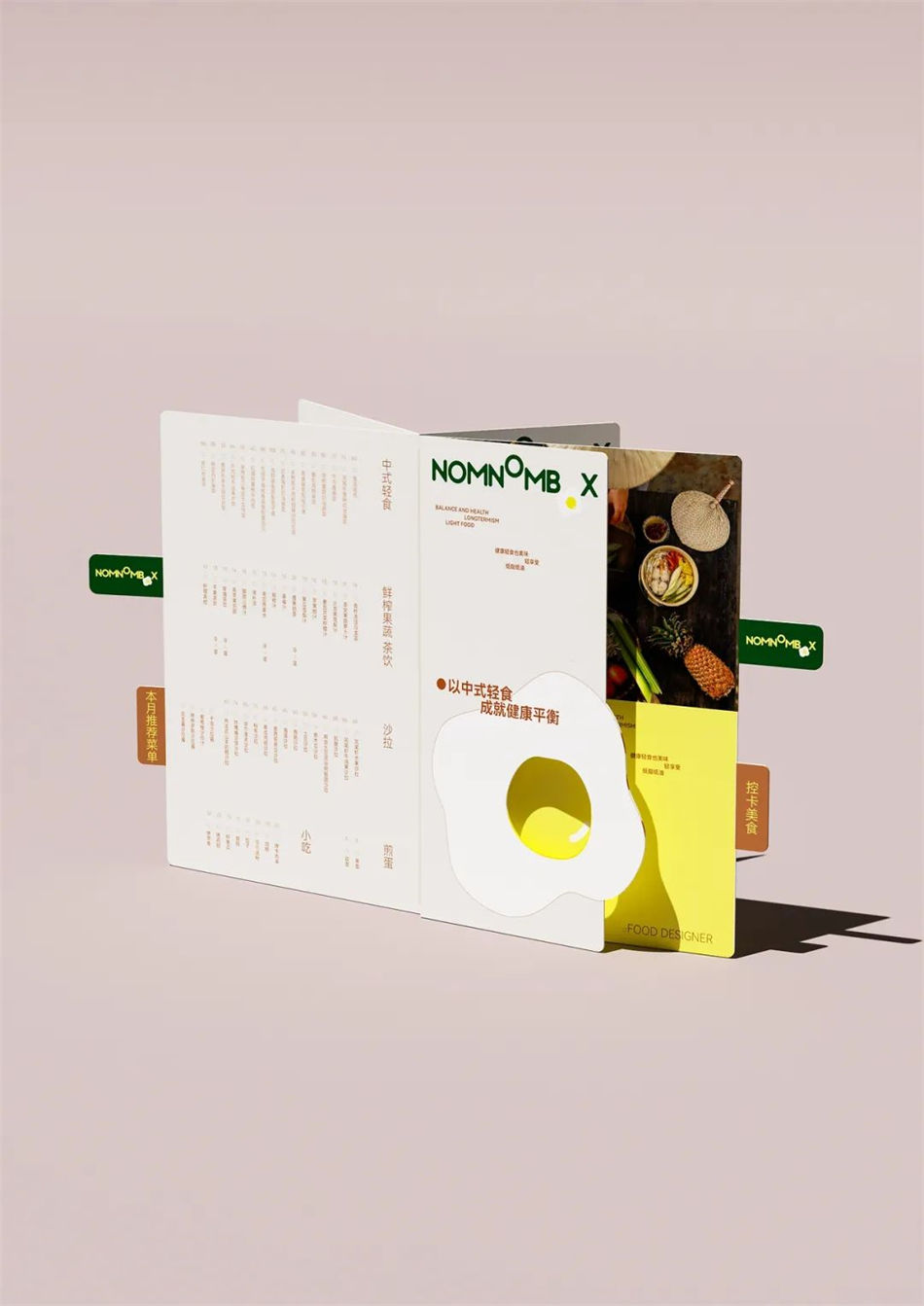 NOMNOMBOX輕食品牌設(shè)計(jì)以"平衡"為核心,通過(guò)字體設(shè)計(jì)和煎蛋圖形傳達(dá)精準(zhǔn)控卡的品牌形象。平衡是控制是舒適也是長(zhǎng)期主義,通過(guò)調(diào)整來(lái)進(jìn)行設(shè)計(jì)表現(xiàn),錯(cuò)落的O形成三角平衡系統(tǒng),把其中一個(gè)O同構(gòu)成煎蛋,把品牌的獨(dú)特性進(jìn)行簡(jiǎn)約式的表達(dá)。煎蛋圖形作為品牌視覺(jué)錘可進(jìn)行獨(dú)立宣傳與多次重復(fù)傳播。也將運(yùn)用于線上社媒,包裝物料,周邊等一切品牌延展。廣告語(yǔ):"以中式輕食成就健康平衡"。視覺(jué)錘+語(yǔ)言釘植入用戶心智。