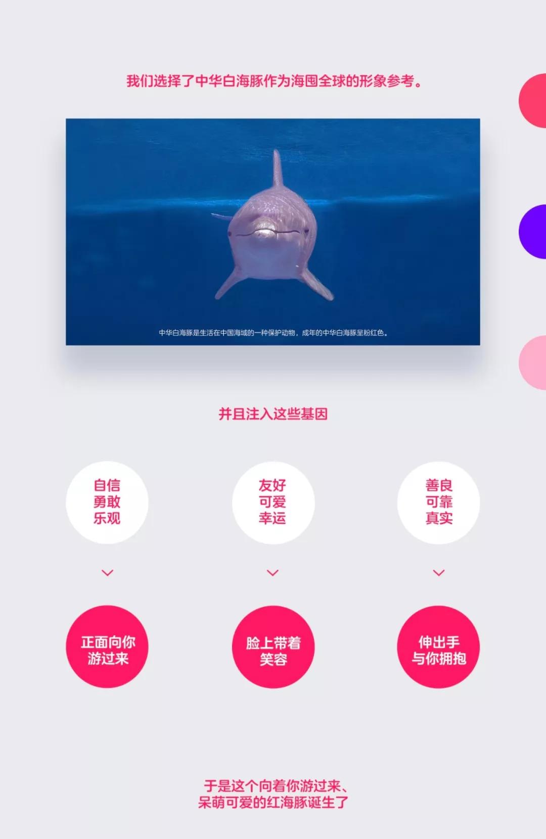 海豚的設(shè)計參考了中華白海豚的形象,正是一種臉上帶著笑容、伸出手朝我們游過來的狀態(tài)。