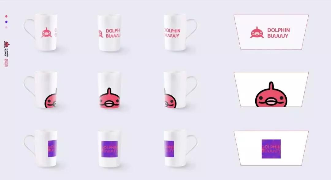 海豚元素用簡筆畫的手法去表現(xiàn),打破了以往海豚藍和灰的用色,以洋紅色的身體和藍紫色的背景進行相撞,給人視覺上很強烈的沖擊感。