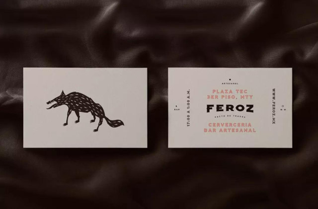 Feroz酒吧的品牌VI設計方案將狼人與月亮的傳說融入品牌設計中,運用手繪感極強的狼形象,與手工釀造的啤酒也相得益彰,同時也把狼人的品牌元素融入到了各組用品的外形設計,讓整個品牌設計顯得更加精致。