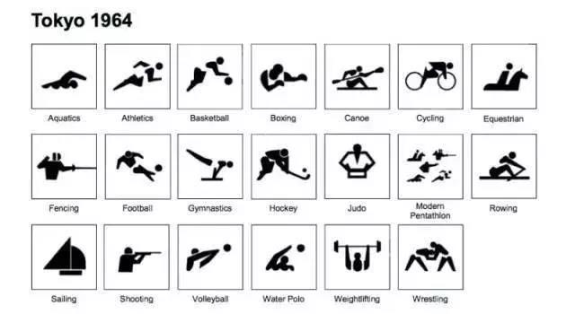 奧運會體育圖標最初是在東京1964年奧運會上推出的,因為需要與越來越多的國際運動員和觀眾進行交流,所以進行路圖標志設計。從那時起,每屆奧運會都會有不同形式的圖標。