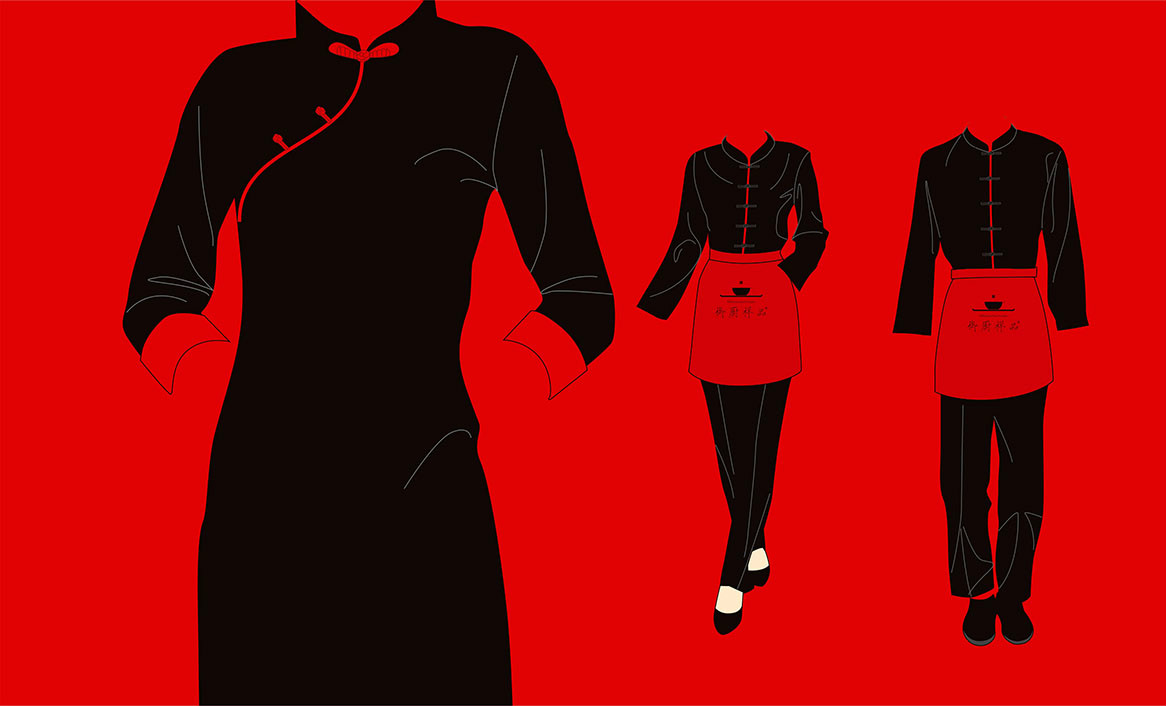 基于客群分析和品牌定位,確定品牌形象風格定位:國潮、輕松、休閑。為貼切傳遞品牌文化和調(diào)性,品牌形象設計采用個性化書法字體設計,以國潮風的形式表達,以民國時期文化為背景的插畫形式展現(xiàn)時代文化記憶,即符合當下國潮審美,又使整個用餐環(huán)境增添幾分味道。