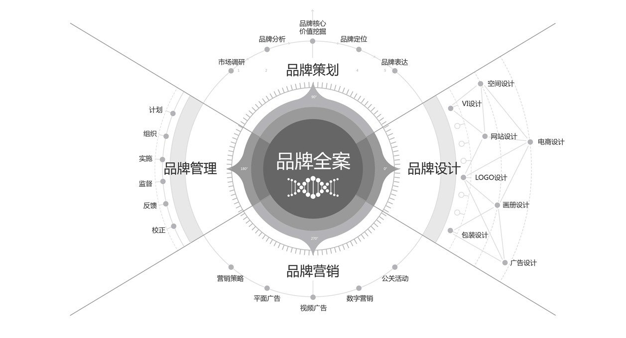 針對新品牌、問題品牌或戰(zhàn)略升級品牌,我們?yōu)槟峁?60°全方位一站式品牌解決方案。從品牌調(diào)研分析、品牌戰(zhàn)略規(guī)劃、品牌整合設(shè)計(jì)、品牌推廣,到落地執(zhí)行一步到位,使品牌價值、定位、訴求、識別、傳播有機(jī)統(tǒng)一,聚合品牌力,避免碎片化。不僅有利于快速有效的打造品牌,更有利于節(jié)省營銷成本。